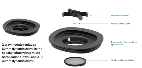 The xMEMS 2-way headphone design is flexible, supporting both open-back and closed-back headphones. It’s modular, so it can be plugged into pretty much any headphone design.