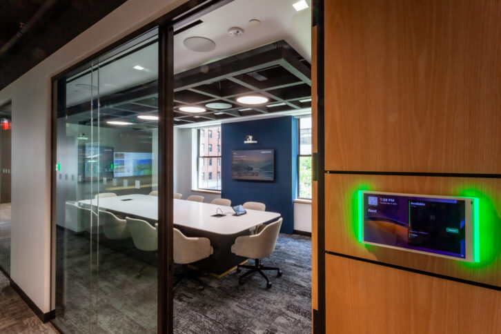 One standout feature is a large event space equipped with an impressive 11-foot video wall, powered by the Crestron DM NVX® AV-over-IP platform. This space is designed for presentations, product launches, and industry gatherings, showcasing the seamless integration of audio and video technology.