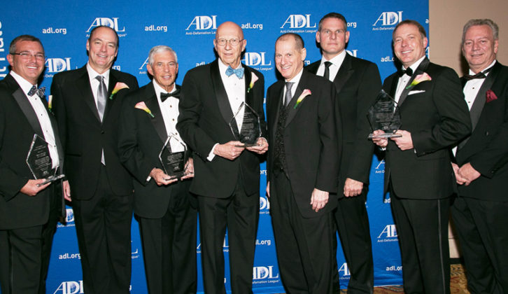 This year’s ADL consumer tech industry honorees, from left: Jim Ristow, AVB/BrandSource; Warren Chaiken, Almo; Bill Crutchfield, Crutchfield; and Gene Chaiken, Almo