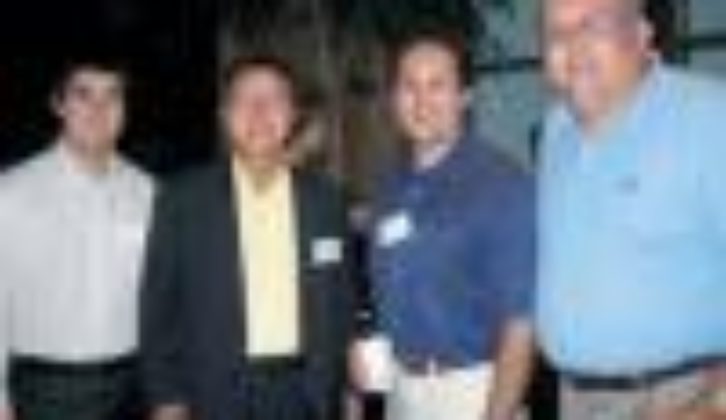 Sharps Al Sosic (far left) and Michael Troetti (far right) flank Dick Wallace of BrandsMart USA and TWICEs Marcia Grand.