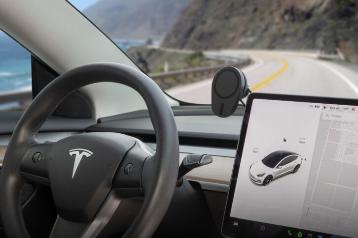 The MagicMount Elite Dash low-profile magnetic phone mount, exclusive to Apple, holds iPhone models 12 in later in view for hands-free use while driving. The Elite is built with an aircraft-grade aluminum base and a built-in ball-joint for easy adjustments. It is compatible with PopSockets and SpinPop grips, and can be attached to either the top or front of a dash with the included automotive grade adhesive. Available now at Apple.com for $29.95.