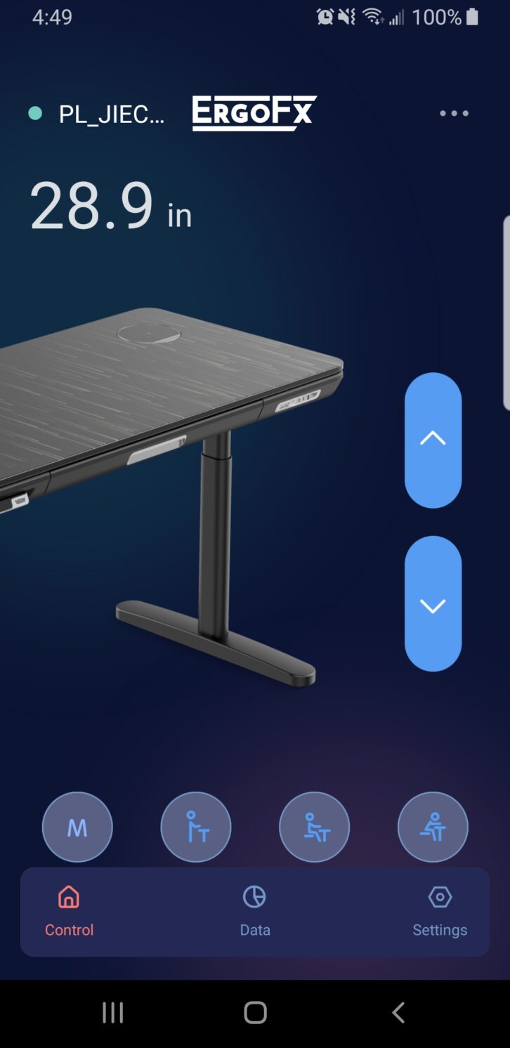 In addition to using the lever to raise and lower the desktop, you can use the free ErgoFx app to select a precise height, and program preferred standing and sitting heights that will automatically adjust when selected. It was fun to open the app when we woke up and set the desk height to standing when we weren’t even in the same room. The app also has options to set standing reminders and can track your standing and sitting time. We found the reminders to be helpful, especially when we were in the zone and forgot to stand enough during the day.