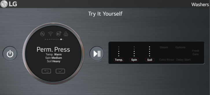 As Vossler notes, “LG has reimagined the buttons and dials that clutter many appliances with digital interfaces. Our laundry machine digital dial is a prime example. It’s an elegant, sleek control that gives customers access to all the options on a traditional laundry machine interface—but when it’s not powered, it just looks like a blank circle. That unfamiliar form factor can be daunting to both customers and salespeople.”