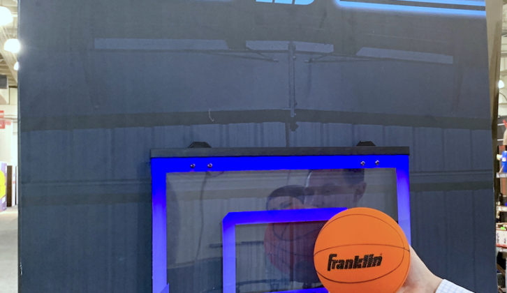 Stop tossing crumpled up paper into available garbage cans to score fantasy two-pointers. Instead, hang this blue-lit shatterproof clear backboard atop any door. Each time the included bounceable 6-inch PVC ball swishes through the hoop, the border lights flash blue, arena-like synth music plays, and two points register on the scoreboard. Hang on after a dunk thanks to the hoop’s double spring-loaded hinges. The LED lights, et al, operate via 3 AAA batteries for up to 30 hours, the board shuts itself off after 20 minutes of inactivity, and the scoring sound effects can be defeated so parents or office mates won’t be disturbed by bank shots.