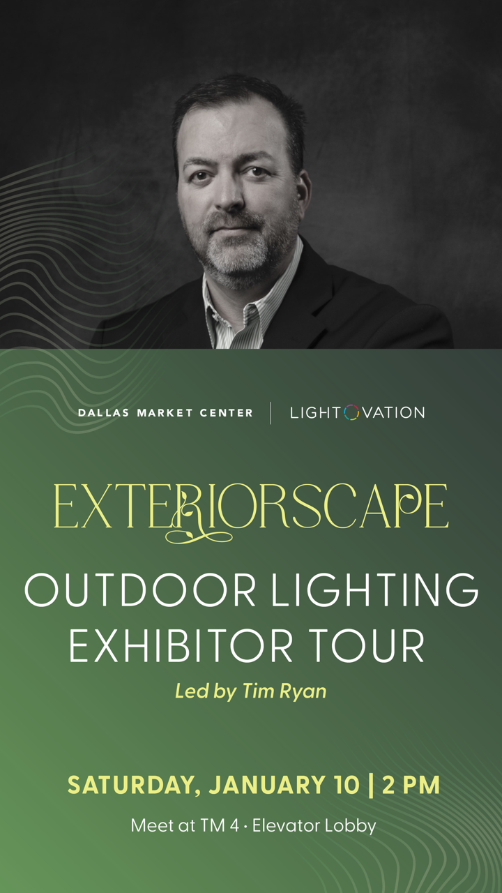 “Outdoor lighting plays a vital role in enhancing nighttime enjoyment for homeowners and their communities,” says Laura Van Zeyl, Vice President of Marketing for Lightovation at Dallas Market Center. “We’re excited for Tim Ryan to provide important insights during our CEU-accredited panel and introduce new product innovations throughout his tour.”