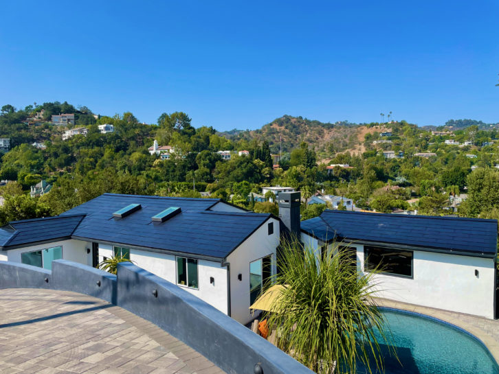 ScooterMusic Studio exterior (at right) note Tesla Solar Cell Roof Tiles