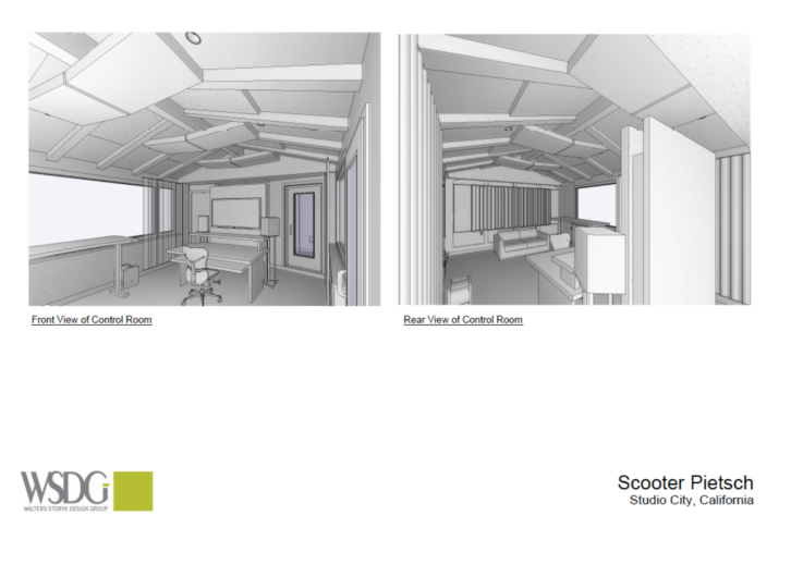 Engaging WSDG to design his new studio, Pietsch hosted an early 2019 on-site visit by WSDG Partners/Project Managers, Matthew Ballos and Andy Swerdlow. Extrapolating a concrete design program from their findings, the team soon provided Pietsch with a floor plan and presentation drawings that maximized the production, recording, mixing and listening potential of his studio site. Pietsch and his three-man construction team went to work on the studio build-out, framing, sheet-rocking the CR/ composing room and fully isolating the compact vocal booth. In early 2020, the ScooterMusic Studio was session ready.